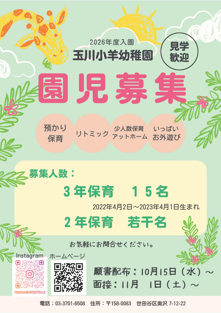 玉川小羊幼稚園 公式Instagram始めました!