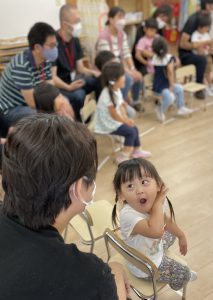 初めはパパたち緊張していたけど、だんだん子どもたちと心が一つになって楽しんで楽しんでくださったみたいだよ。きっと幼稚園のみんなが羨ましかったかもよ。だって、帰り道のパパとキミの歩く姿は、二人とも園の子どもたちみたいに仲良く歩いていたもの・・。