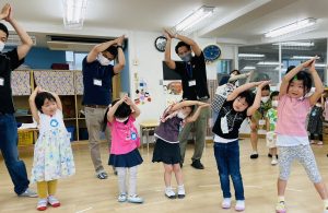 ダンスは、園オリジナル曲で踊ります。フォメーションが複雑ですが、みんな真剣。今では歌も覚えて歌いながらダンスしてます。木曜日の預かり子は自分たちだけで練習してました。