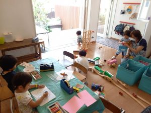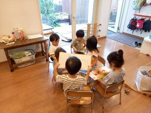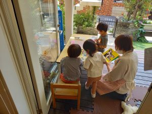 絵本を読んだり、テラスにマットを出したりと、こどもたち自身が楽しみを見つけていく姿を見ていると、私たち教師も自然と笑みがこぼれます。ゆったりのんびり、今の時間を楽しんで満喫してほしいな、そう願う日々です。