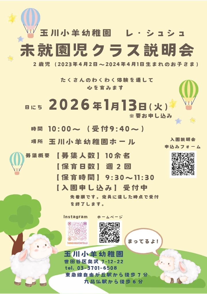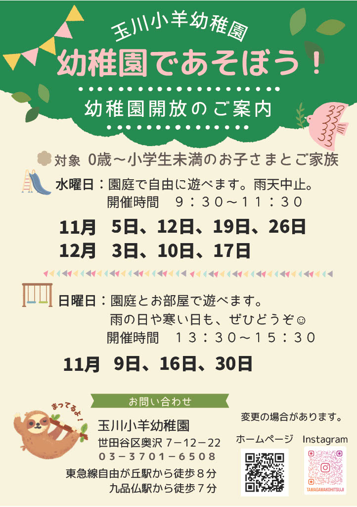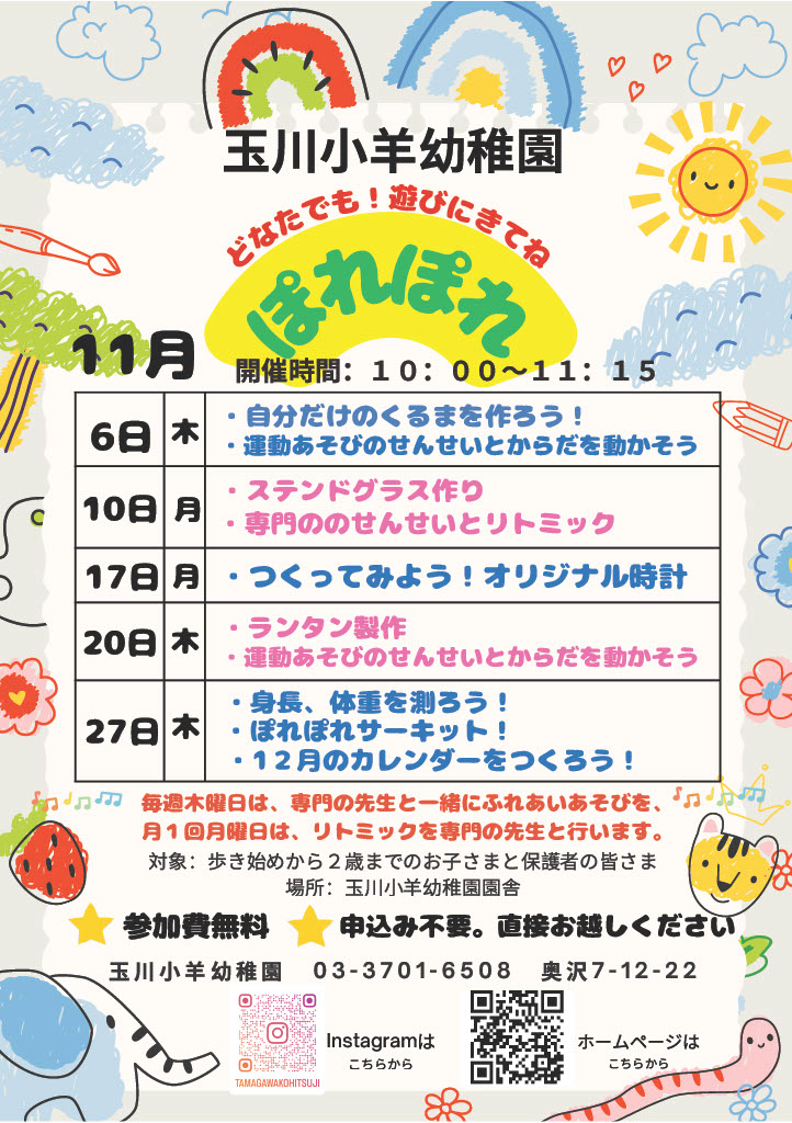 玉川小羊幼稚園では、公式インスタグラムを始めました!