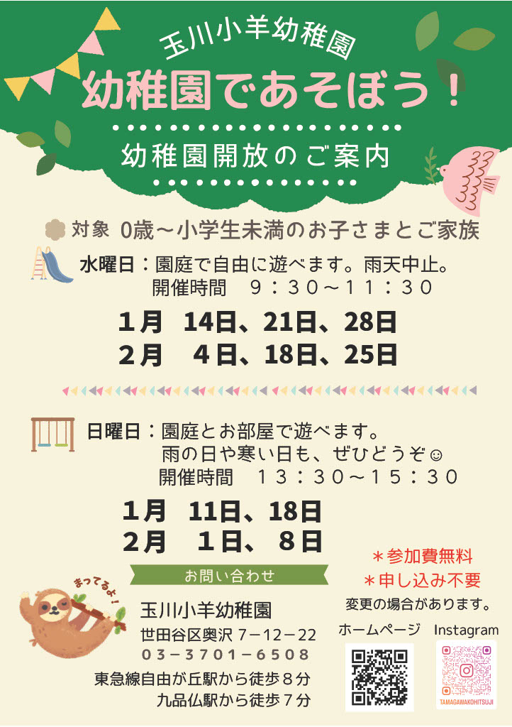 2025年度に玉川小羊幼稚園で実施する、地域子育て支援のご案内です!